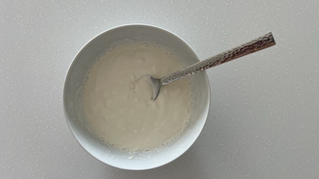 V Makru jsem sehnal 36% zakysanou smetanu, je tak tuhá, že v ní stojí lžíce. Já jí proto ředím vodou, aby se dala lépe a rychle zkonzumovat a nelepila se mi na patro. Těch 200 gramů spolknu jako nic.
